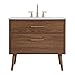 Walnut Brown finish; three hole faucet hole design (faucet not included); Round slayed legs design, minor leg assembly needed; Assembly Required No; Style midcentury modern; Type bathroom vanity; Product Warranty 1 year limited