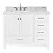 INSTALLATION: The vanity cabinet will arrive fully assembled. Open back for easier installation. The countertop is not attached to the vanity. You will need to attach the sink to the countertop and countertop to the cabinet. Countertop is pre-drilled for a 3-hole faucet 8" widespread. 1 ceramic rectangular UPC certified undermount sink included. Please scroll down the page to product guides & documents for Installation & spec files. Right offset sink configuration. White painted finish