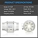 【6 INCH PARAMETERS】Dimension:19 x 13.5 x 15cm/7.5 x 5.3 x 5.9inch; Air Flow: 382 CFM, Power:40W, Voltage: 110V, Frequency: 50Hz, Speed: 2800r/ min