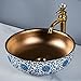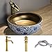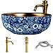 -[ About Sink]: It’s a traditional jingdezhen handmade premium quality ceramic blue and white vessel sink , The sink outside is classic intertlocking lotus flower decoration. The inside is gold color glazed, It's precious.