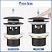 Installation Size: Pop-up drain cover diameter: 2.7'', Height (pop-up open): 3.8", Height (pop-up closed): 3.4", Hole diameter: 1.8’’