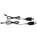 USB Cables input: DC 5V, output current: 7.4V 1000mA. USB charging cable have IC circuit protection. When charging, green light flashing; green light stop flashing after full charged.
