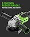 【Ergonomic Handle Design】The angle grinder features a 3-position auxiliary side handle to provide higher comfort and more precise control when grinding/cutting various materials with different angles. And soft rubberized grip is anti-vibration to hold comfortably, allowing long time working without much fatigue.