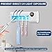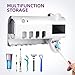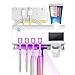 ❤❤ Multifunctional Design ❤❤ Toothbrush sanitizer and holder ,include ①4 pcs toothbrushes , suitable for electric / regular toothbrush ; ②1 automatic toothpaste dispenser , convenient to use ;③5 storage slots ,you can hang items you want to hang behind, such as razors,dental floss,tongue scraper etc.