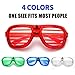 An assortment of 12 shades are included (3 X Blue, 3 X Green, 3 X Red,3 X White) in each box. the glasses are made of environmentally friendly sturdy high-quality PC plastic, safe and non-toxic and no heat generation. the LED shutter shades glasses lights do not block off the vision and one size fits most.