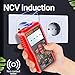 NON-CONTACT OPERATION:The non-contact voltage test of this multi tester is equipped with an audible and visual alarm, which can completely protect the safety of the user. You can test the AC voltage without using the test line at a certain safe distance. When using the NCV function, when the meter senses an AC signal, the red indicator light will start flashing and the buzzer will sound a "beep". The stronger the signal, the faster the light flashes and the more rapid the sound.