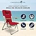 SPACE SAVING AND PORTABLE: This beach chair for adults folds up easily and a foam handle for easy carrying, making this an excellent accessory for the beach, camping, and concerts; folds almost flat for easy storage in the car, garage, or deck box