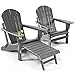 RETRACTABLE OTTOMAN AND CUP HOLDER - Build-in ottoman footrest of folding adirondack chair can be easily pulled out to have a rest, or retract and hide it under the seat to save space. The cup holder of the outdoor adirondack chairs can be used to place regular water drink beer etc. The deepened construction and bottom plate prevent shaking or falling.It can be hidden under the wide armrest when not in use. Folding design makes modern adirondack chair easy to take with you for a road trip.