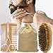 BEARD BRUSH & BEARD COMB - The dual sided comb is made of high quality sandal wood offering the best rapid grooming experience with both its fine and coarse teeth for different hair types.The boar bristle beard brush is Pocket-size, you can pull through oils,balms,softener,serum and any stuff or groom your facial hair in anytime, anywhere.