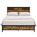 【Comfortable & Practical Headboard】The retro industrial style platform bed frame with gray upholstered backrest and storage headboard, which is comfortable and functional. Can provide storage for your glasses, mobile phone, books, jewelry and other items while sleeping. The design is simple and beautiful, suitable for any styles of rooms.