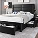 【Upholstered Bed with 4 Large Drawers】 Comes with 4 wire netting drawers with rollers under the storage bed, this full size bed frame with headboard provides convenient storage space for keeping your off-season clothing organized. Each drawer is measured 31.5’’L x 19.7’’W x 6’’ H.