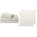 Home Bundle: includes 1 cream 16 by 16 throw pillow cases and 1 cream 4 piece queen bed sheet set including 2 pillowcases, 1 fitted sheet, 1 flat sheet