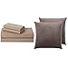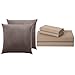 Home Bundle: includes 1 taupe 16 by 16 throw pillow cases and 1 taupe 4 piece queen bed sheet set including 2 pillowcases, 1 fitted sheet, 1 flat sheet