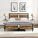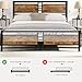 【Industrial/Rustic Style Metal Platform Bed Frame Queen】: The combination of wooden panels and metal frame takes a strong industrial/rustic flair that is suitable for industrial, rustic, transitional and farmhouse decor homes. The headboard of queen bed frame features an open horizontal-bar design and the wood grain pattern adds a natural accent.