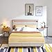 【Storage Headboard with Charging Station】bed frame with 2 Standard Plug Outlets & 2 USB Ports,which is very convenient for you to charge your mobile phone or pad when you are lying on the bed and keep you always connected to the world.2-tier storage headboard equals nightstands, makes mobile phones, glasses, books, coffee cups, chargers, etc. within easy reach.And provides an extra place for ornaments, photo frames or anything else you wish to display.
