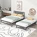 【Extra sleeping space】 This bed comes with a trundle, which is a perfect choice for sleeping-over lovers. This multi-functional daybed with trundle is designed for rooms with limited floor space. It provides two additional sleep areas for overnight friends or family members. It gives you flexibility to accommodate a variety of options. 2 of 4 wheels has brakes to stop trundle from move on uneven floor.