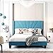 【ELEGANT DESIGN】This platform bed is crafted from carefully selected velvet fabrics with elegant decorative details, perfect for any home decor. A soft textile headboard creates comfort.