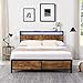 【Rustic Style】The queen bed frame with headboard is got a rustic but modern feel to it with the vintage headboard and footboard and black metal combination, and easy to match your home furniture.