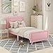 🐰【Sturdy Twin Platform Bed for Kids】The slatted frame is made of a combination of plywood, the bearing capacity is up to 250LBS, this PU leather upholstered bed can stay firm and quiet while sleeping. Surprise your little one with this beautiful gift.