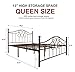 【Space Saving】 The queen metal bed frame is 13 inches off the floor, which offers sufficient space to storage boxes, clothes, sundries, etc. The standard large base is high enough for most mattresses. No spring box is needed. (mattress is not included)