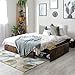 Great Space Saver: 4 XL drawers mounted on moving wheels, queen size bed frame offers ample storage space for off-season clothing, bed sheets, etc. keeping your bedroom organized & clutter-free. Drawer size: 30"L x 20"W x 5"H.