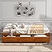 【Wood Twin Bed with Trundle】: This twin size bed features a pull-out trundle bed, which makes it easy to create the extra sleep space when needed. Our twin bed with a trundle bed is ideal for accommodating guests, sleepovers or for family with several kids. And when the space is at a premium, it can offer you room to spare.