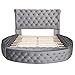 【Gorgeous Upholstered Platform Bed 】The queen size bed frame with headboard featuring button-tufted diamond detailing along both sides and headboard and footboard makes a statement in any bedroom space. Its foam padded upholstery offers supportive comfort while relaxing.