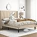 【Modern Headboard】The bed frame's headboard, designed in modern geometric wingback style, is covered by skin-friendly linen fabric, which will add sophisticated style to any bedroom.