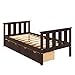 【Wood Frame with Strong Support】: The twin bed with drawers is made of premium pine wood, which is sturdy and durably. Coming with solid wood bed slats, the bed can stand up the weight of mattress evenly to extend the life of it. The support legs in the middle of the bed increase the weight capacity of the bed.