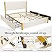 Deluxe Appearance & Easy Assemble: The wooden slatted bed frame with beige fabric and gold finished frame looks luxurious and will add a modern touch to your bedroom. What’s more, it is also easy to assemble. The plywood slats are equipped with easy-connect buckles, which allow you to put them together with ease.