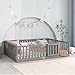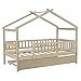 [BETTER SLEEPING]: Wood house bed frame with roof for kids has guardrails and solid pine frame to provide a safe space for your child, while also ensuring comfortable sleep without compromising air circulation.