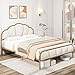 LUXURIOUS & PADDED HEADBOARDS: This storage bed frame has a perfect combination of antique gold brushed finish and velvet fabric, which brings you an ultimate luxurious ambiance. The headboard is button-tufted and filled with high resilience sponge, which is comfortable to lean against while reading or watching TV in bed.