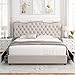 【Classic & Modern Charm】The full bed frame is completely upholstered and padded for a premium look and feel. High quality linen fabric is selected to add tailored touch and upscale aesthetic. Graceful arched profile, classic bronze nailhead trim, diamond stitches and tufted button lend chic and subtle beauty, setting the tone for a bedroom of livable elegance
