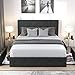 【Stylish and Comfortable】The full bed frame with Upholstered linen and tufted headboard, this classic upholstered bed frame can match a variety of bedroom styles perfectly. Thick and dense foam padding gives you comfortable touch.