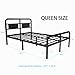 【REINFORCED STRUCTURE】Situated atop 9 thickened support legs, this iron bed frame queen features heavy-duty steel framework, 12 built-in metal slats and attached EVA foam padding, ensuring that whenever you sleep you won't be bothered by any pesky, squeaky noises. Adjustable foot pads provide excellent stability on uneven floors. It can support a maximum weight capacity of 800 lb.