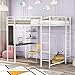【Solid Construction】This loft twin bed made of sturdy metal, provides extra durability and safety. Additional metal slats support mattresses and extend life effectively. Full-length guard rails surrounding top bunk keeps you in place when you sleep. Two sides built-in ladder makes it easier to climb to upper bunk.