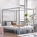 ✨【Modern Canopy Bed Queen Size Platform Bed】: The Queen poster bed is an eye-catching piece with a Contemporary design that will make perfect centerpiece for your bedroom. With a minimalist headboard and footboard, it is crafted with a solid pine wood construction on white finish. It includes secured bed slats without needing a box spring.