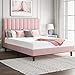 PLATFORM BED WITH HEADBOARD: The soft-packed part of bed frames’ padded headboards are made of high-quality Velvet wrapped with high resilience sponge, perfect for sitting on this bed to read the books or playing an iPad