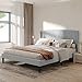 ✔【Sturdy Wood-Metal Construction】Interior metal framework, 12 pieces of durable wood slats, and dense foam-padding border increase comfort and durability of this queen upholstered bed with wing design. With a maximum weight capacity of 816 lbs.
