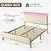 【Sturdy Metal Frame with Headboard & Footboard】 Metal bed frame with wooden headboard and footboard adopt a reinforced design, 13 metal slats and 9 metal legs provide strong mattress support, no box springs required, and can hold up to 700 lbs.
