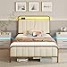 【Multi-Funcion Storage Space】The bed has four large capacity sliding drawers that offer ample place to collect sheets, accessories, and off-season clothing. 2 tiers of storage shelves on the top of the headboard provide enough space to charge or place your phones, clocks, iPad, glasses, and other decorations, etc.