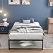 [Detail Dimensions] Twin size bed frame with the detail size of 77.2" x 35.6" x 12.8"(L*W*H). The under bed height is 12.7".