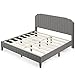 【Upholstered Headboard】Our favorite detail is the foam-filled, polyester-upholstered headboard which is accented with trend-forward button tufts that add crisp contrast against the clean-lined wood frame.The soft tufted headboard is included as a comfy linen fabric backrest that brings you and your partner a cozy feeling.