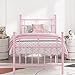 Twin Canopy bed frame features a headboard and footboard, an elegant addition to a toddler, guest or kid bedroom, the bed frame's metal slats offer quality mattress support.