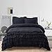 【Fabric & Color & Design】100% cotton material .Modern,Boho stylish and elegant black.The updated product style, as shown in the figure, is decorated with a detachable pom-pom at the corner of the Duvet Cover,which can be removed during washing.6-layer pleated ruffle,Also decorated with a ruffled envelope pillowcase. Zipper closure