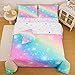 【Unique Design】Rainbow bedding comforter printed with the gradient pink blue yellow glitter galaxy pattern, fantastic chic colors ombre mix with glitter stars,it is suitable for child,baby or anyone who is curious to the universe.