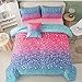 Unique Design: Colorful queen size bedding comforter use the latest 3D printing technology to create an eye-catching design. Our rainbow bed comforter printed with the gradient pink glitter galaxy pattern, making your bedroom more warm and romantic, it is not only a bed cover, but also a great gift idea for teen girls kids adults.