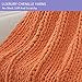 HOLEY CHUNKY KNIT BLANKET - Our burnt orange chunky throw blanket is 100% hand knit with Jumbo Chenille Yarn. This plush chunky blanket will be a good home décor throw blanket for couch, bed and sofa.