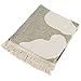 Cream and brown recycled cotton blend printed throw blanket with blinking eye pattern and fringe