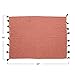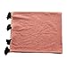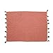 Attractive cotton blend throw with tassels has a lovely rose tone with contrasting black detail